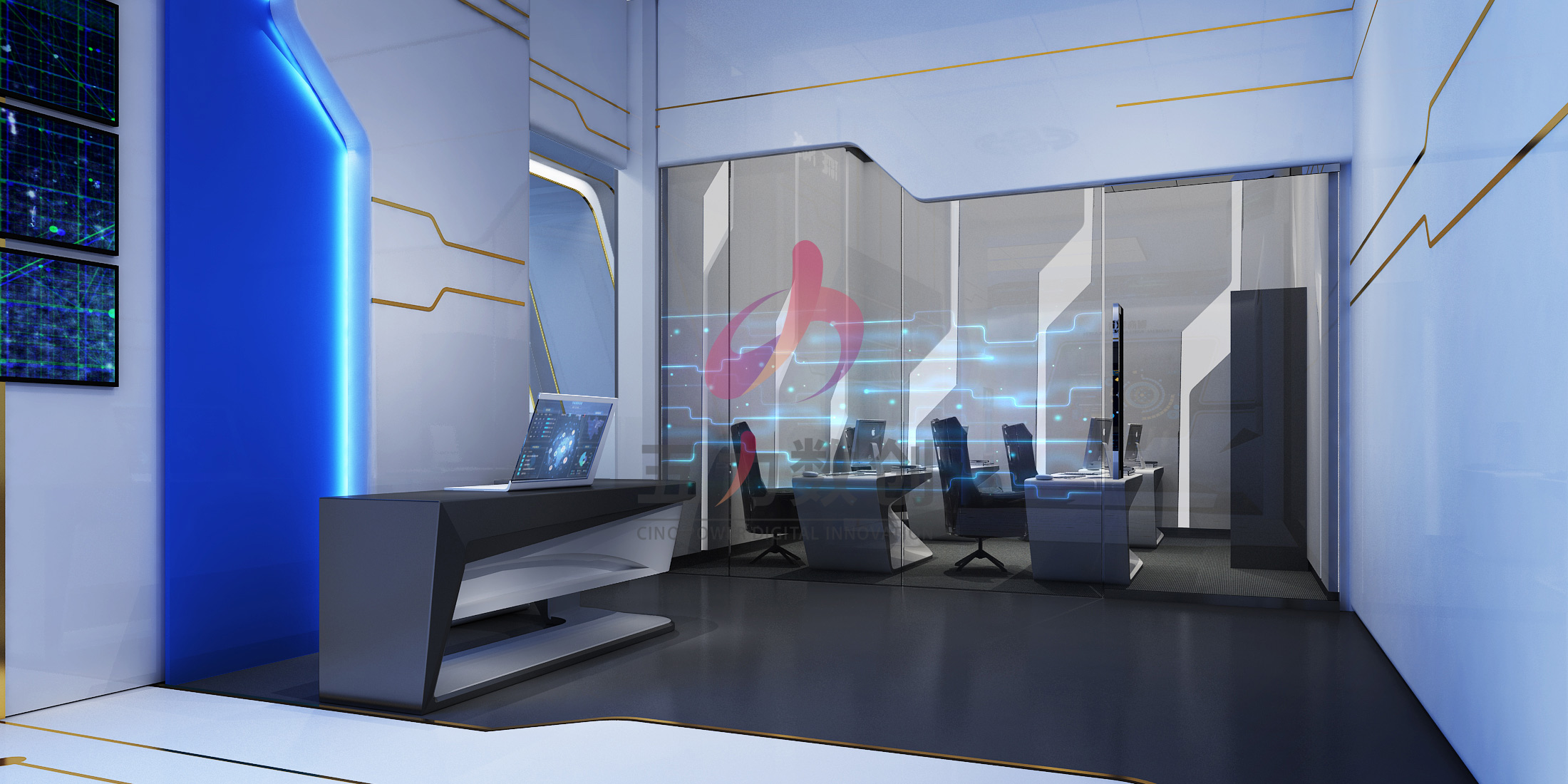 五力數(shù)創(chuàng)憑借優(yōu)秀的整體設(shè)計(jì)能力,始終圍繞“智能服務(wù),智造未來(lái)”的主題概念為銀企方舟智能服務(wù)展示中心設(shè)計(jì)了科技感強(qiáng)烈的智能展示中心,同時(shí)以大數(shù)據(jù)應(yīng)用和智能化服務(wù)為基礎(chǔ),用高端、現(xiàn)代、新穎的數(shù)字多媒體手段為展示中心賦予了更多的生命力。全方位展示智能化服務(wù)平臺(tái)的高效和便捷。